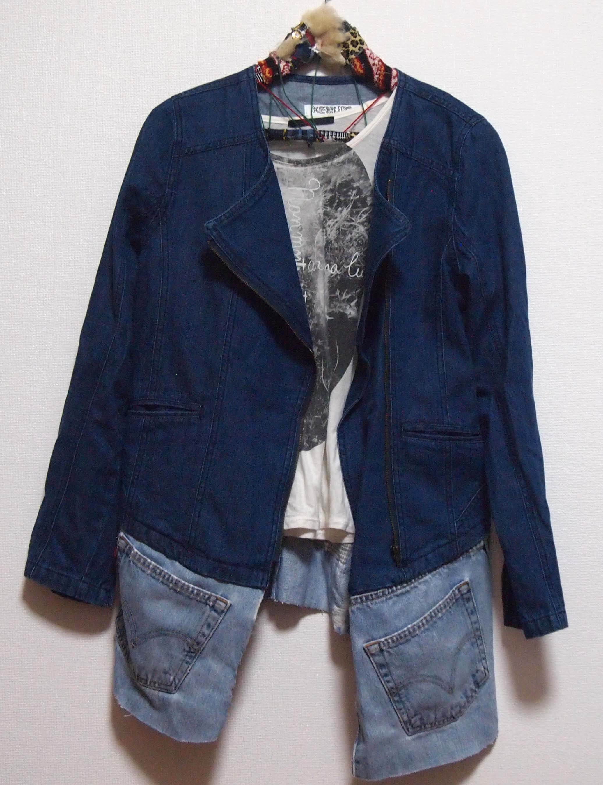 ●2種類の色味のデニムをドッキングしたデニムライダースジャケットです。
