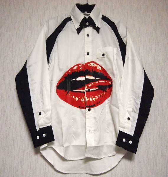 ●リップ柄を大胆に転写したバイカラーのシャツです。