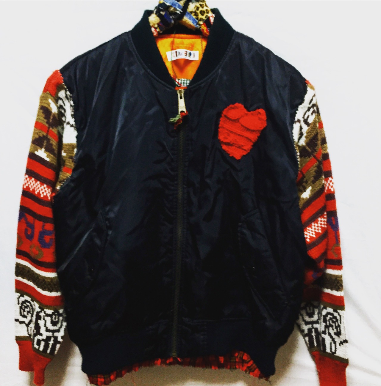 ●袖をニットの切り替え、ハートのニットをパッチワークされたデザインです。