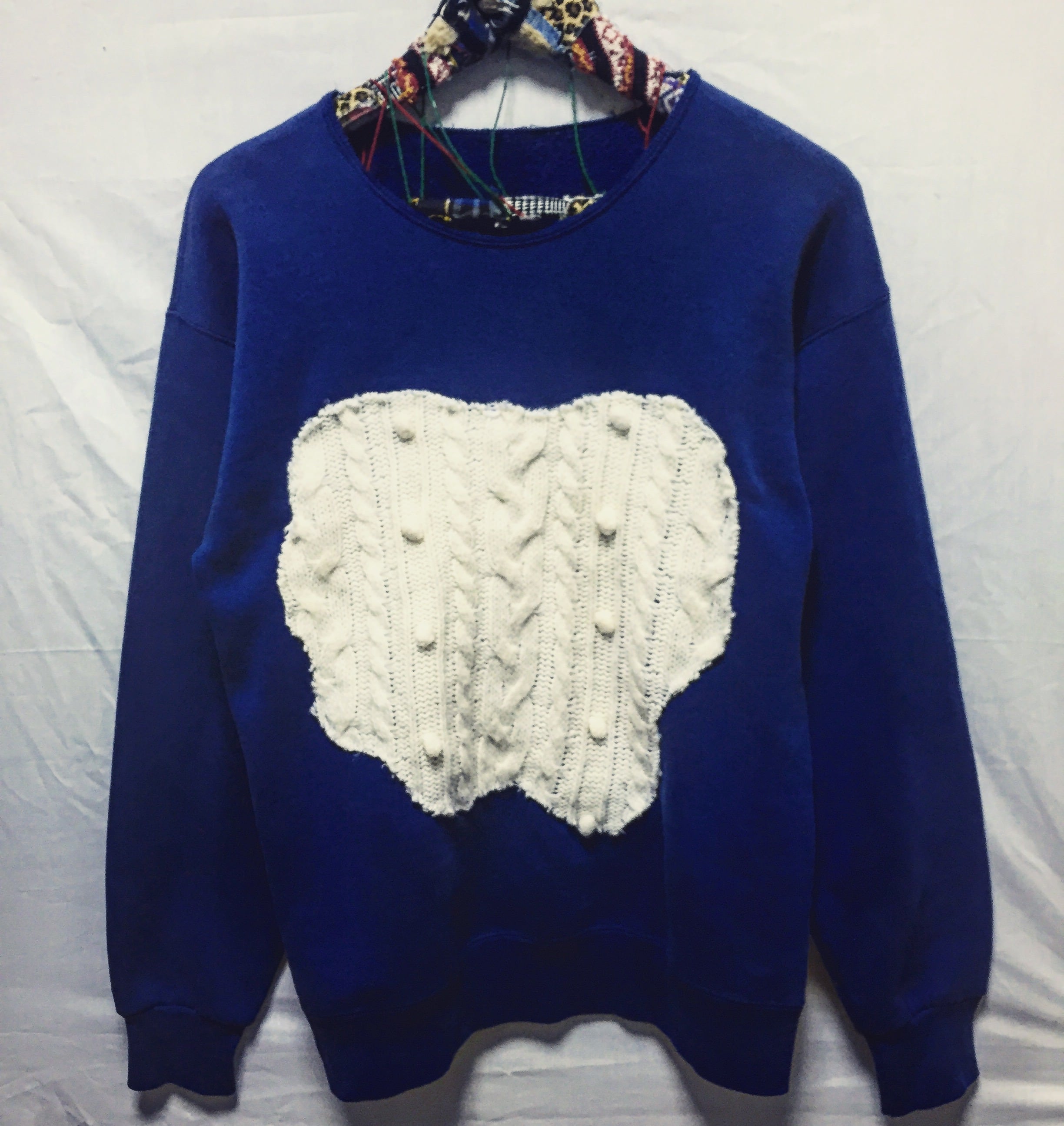 ●ケーブルニットをスウェットに無造作にパッチワークしたデザインです。