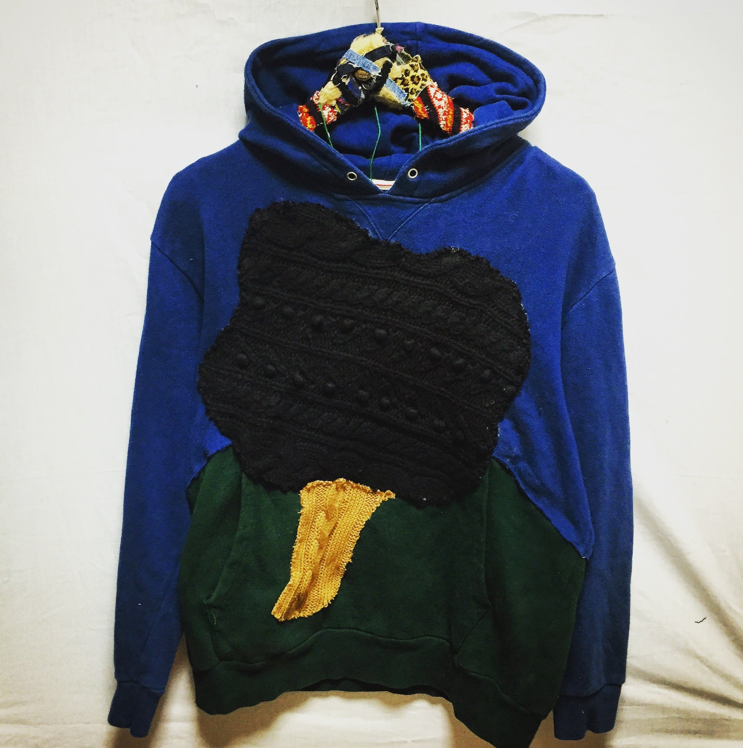 ●ケーブルニットをキノコの形に見かけスウェットパーカーにパッチワークした️デザインです。