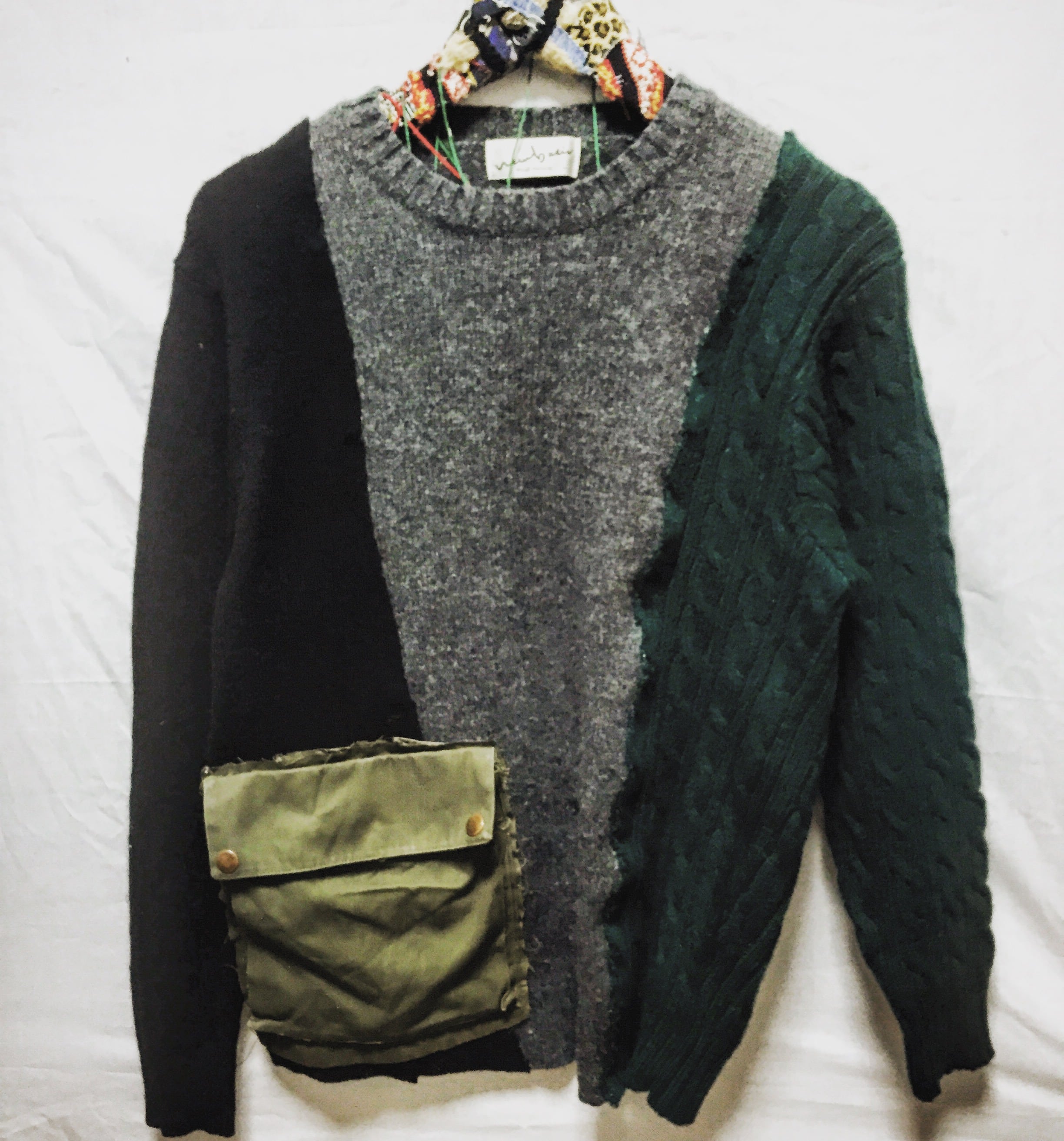 ●3種のニットを切り替えたベースに大きなミリタリーポケットをアクセントにされたデザインです。